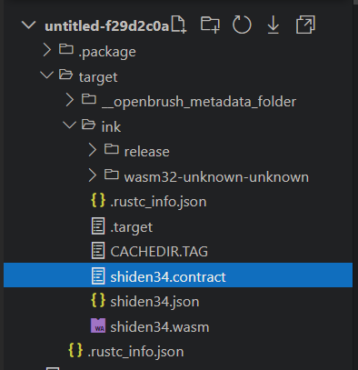 After a successful compilation, the left-hand Explorer panel will display the "target/ink" folder, and within that folder, you will find the "***.contract" file (used for deploying the contract).