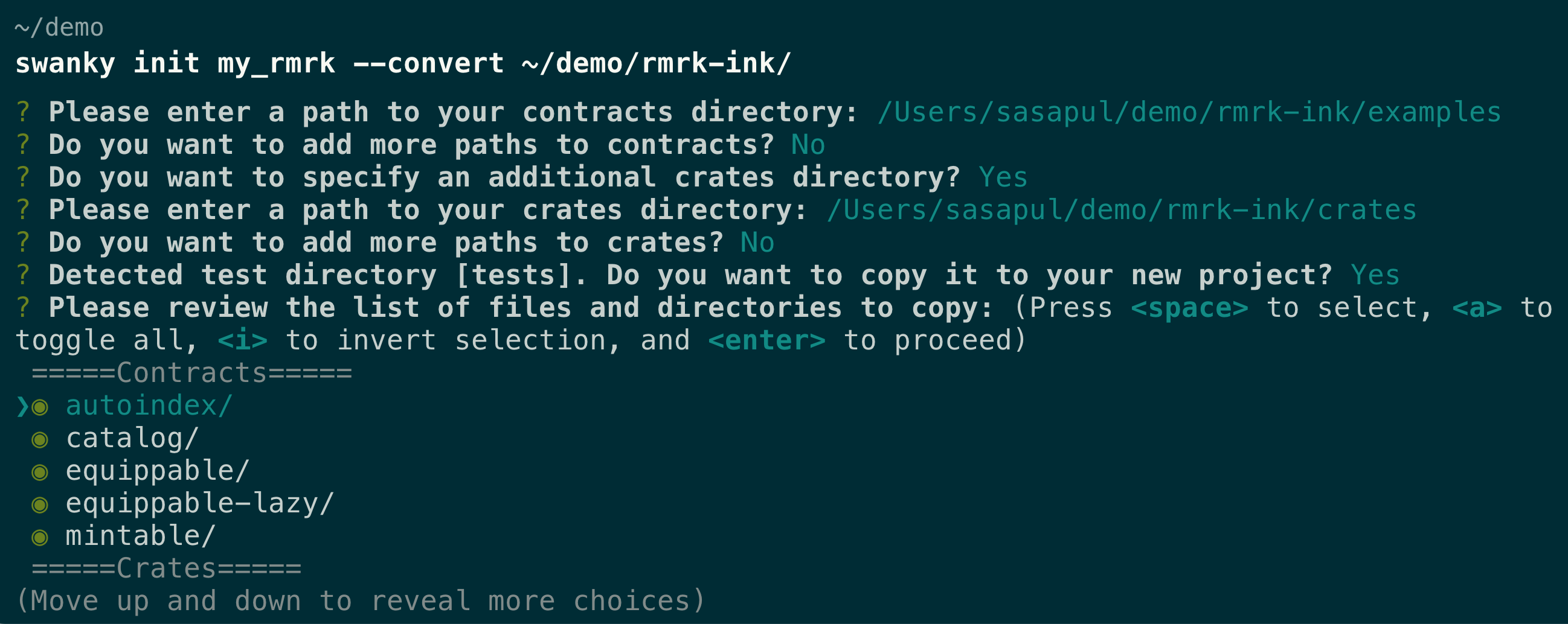 It will prompt you for locations of your contract files, as well as additional crates and tests.
