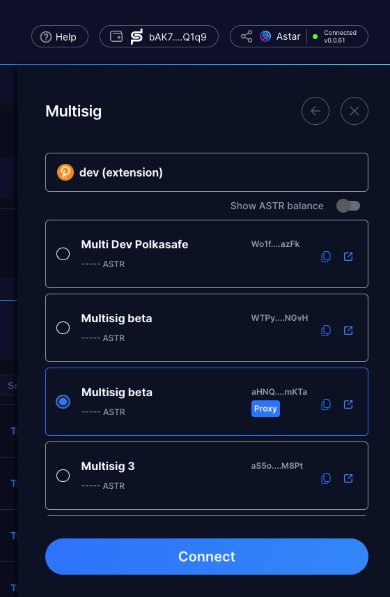 - You can now use the Astar Portal in the same way you would with normal accounts;