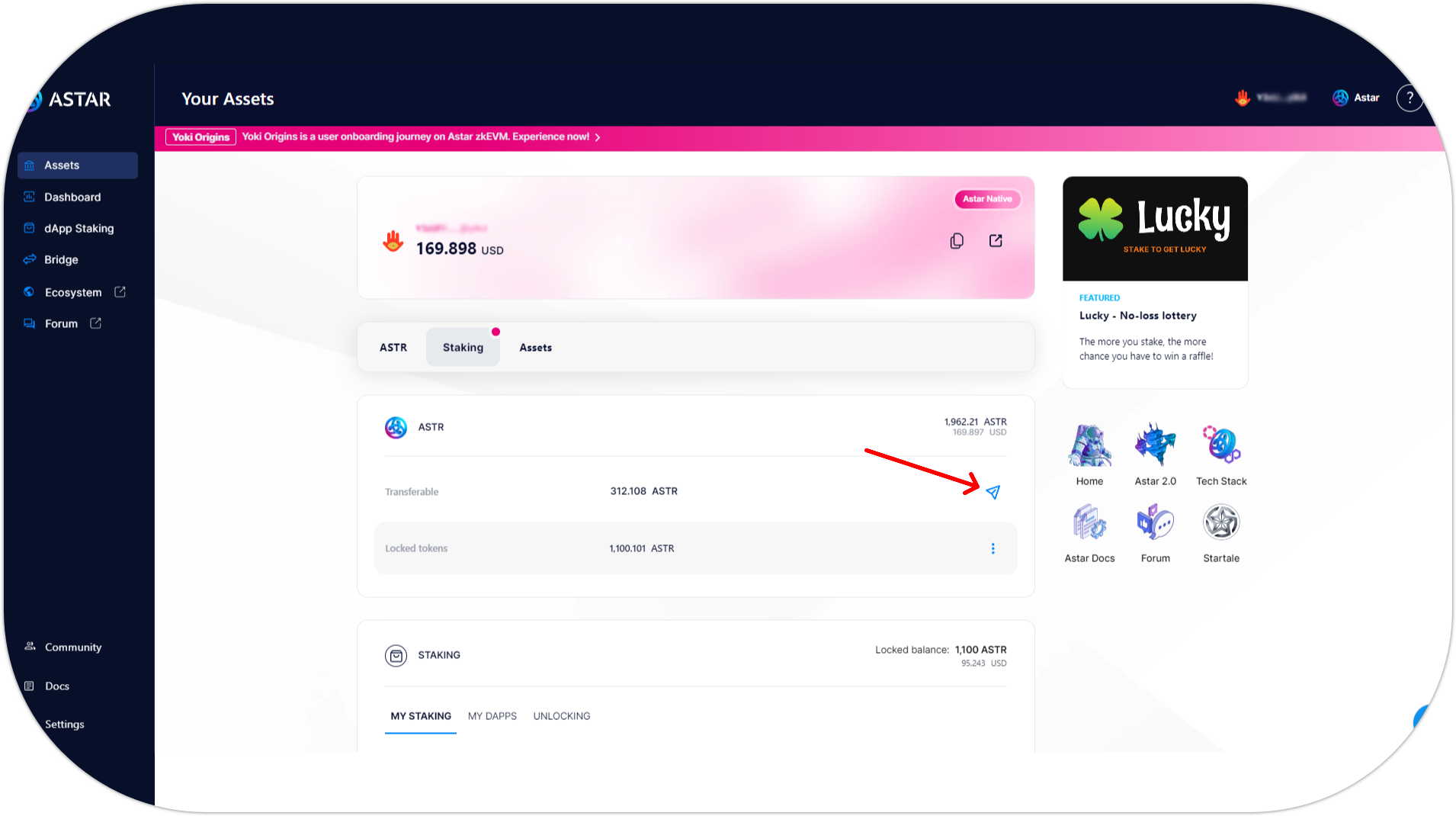 Transfer ASTR on Astar Network