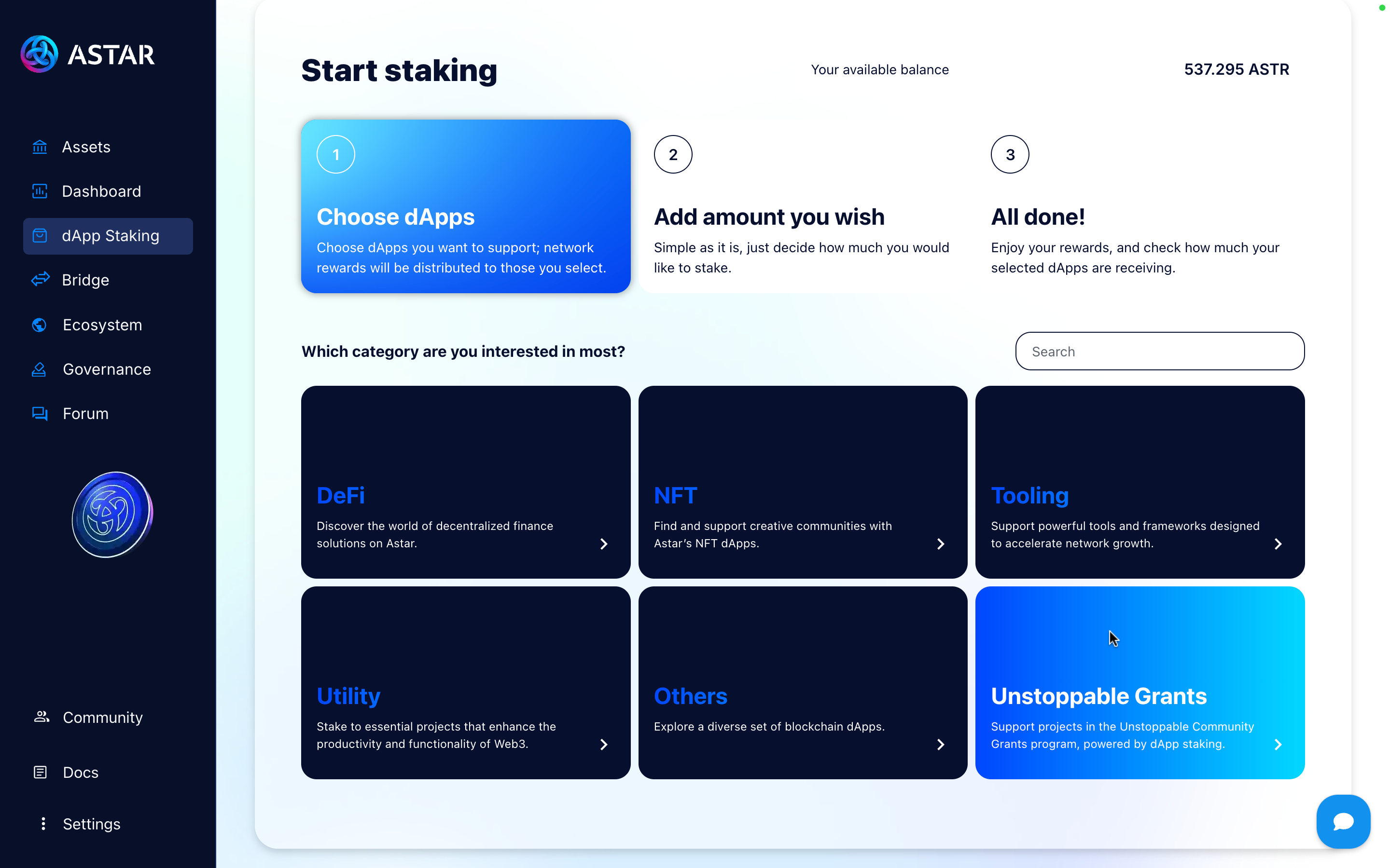 Go to our Astar Portal, the site where you can manage your funds and accounts within Astar ecosystem.